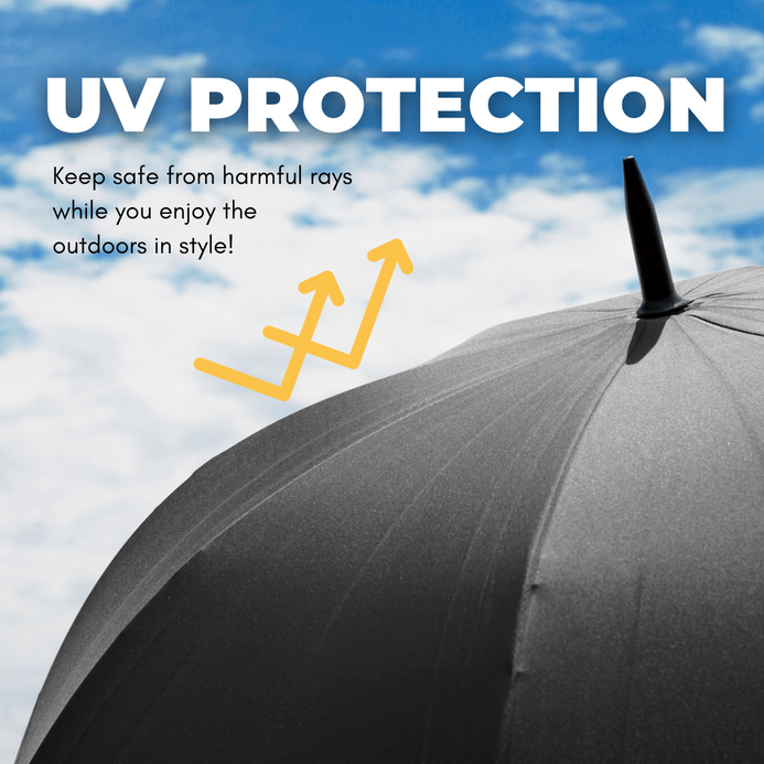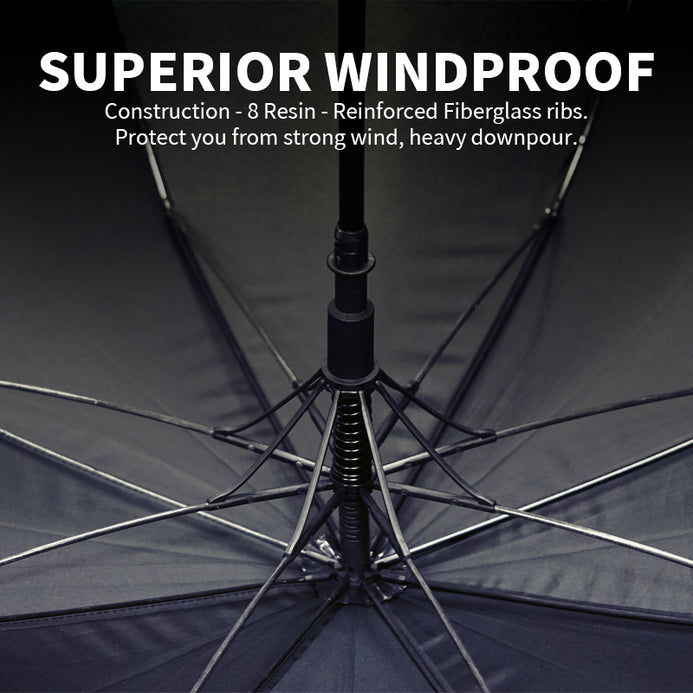 1. Improved wind resistance: The umbrella has 8 fibreglass ribs that bend and flex in windy conditions, reducing the risk of breakage.