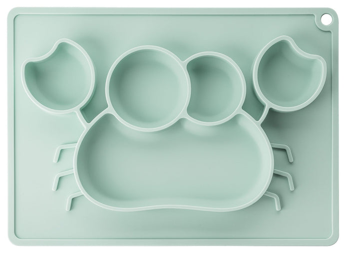 The silicone placemat has a beautiful crab shape and is super non-slip due to its texture and allowing food to be separated creatively. In the eating learning phase, different foods can thus be offered separately from each other. The cute crab shape and attractive colours of the eating mat encourage independent eating even for the youngest children.