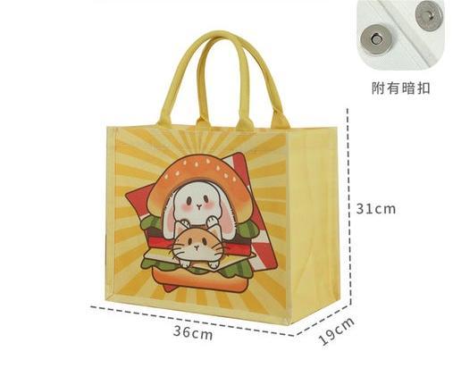 Add a pop of yellow and a dash of kitty charm with our Burger Cat canvas bag!