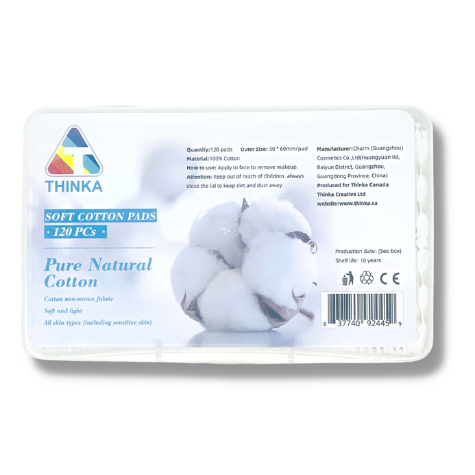 SOFT COTTON PADS  120 PCs Pure Natural Cotton Cotton non-toren fabric Soft and light All skin types (including sensitive skin) Production date: (See box) Shelf life: 10 years.
