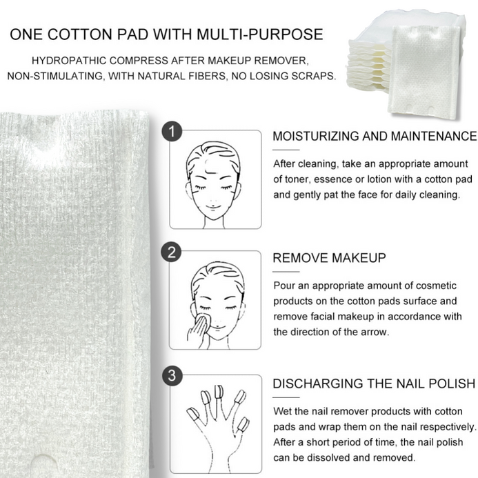 - Skin cleansing, make up or make-up remover, nail polish removing, glasses lens wiping, etc.