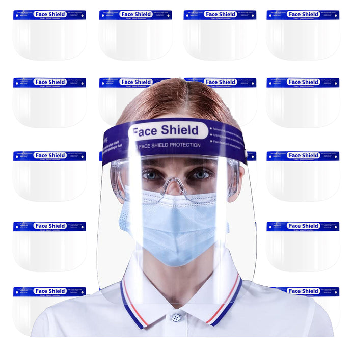 • [Transparent face shield]contains 100 individually wrapped disposable Face Shields. No assembly required!