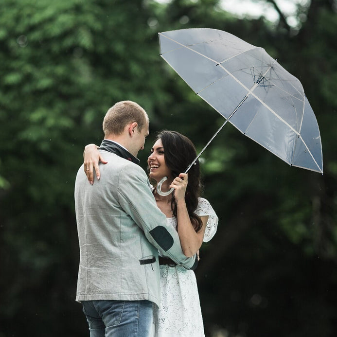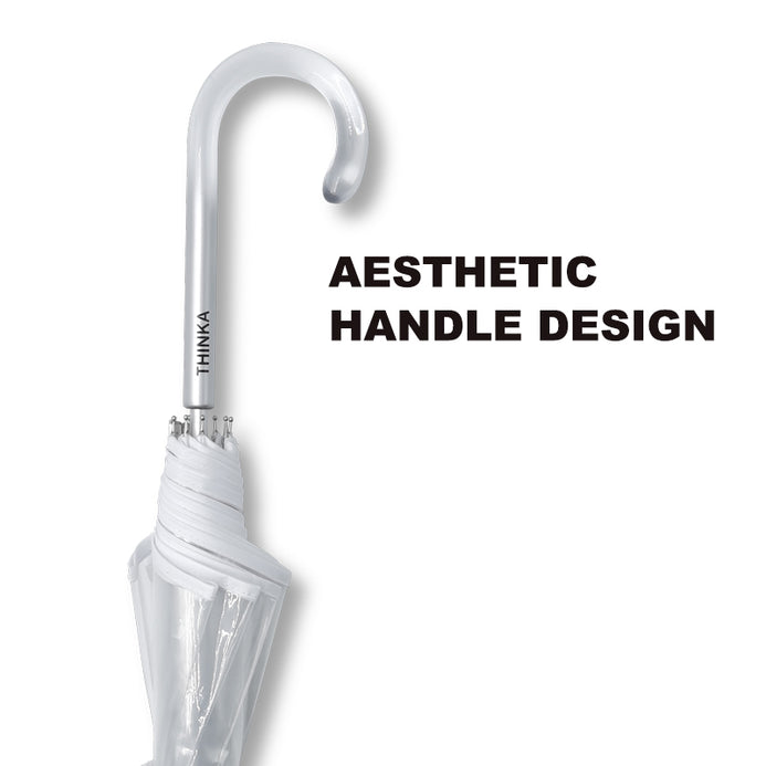 A functional and stylish transparent umbrella for rainy days with a smooth silver handle and automatic open feature is the perfect accessory for those who want to stay dry and stylish on rainy days. With its clear canopy, it blends well with any outfit, and the silver handle adds a touch of classic elegance. The windproof design and automatic open feature make it practical and convenient to use, providing protection from the elements and making it easier to open and close in a hurry.