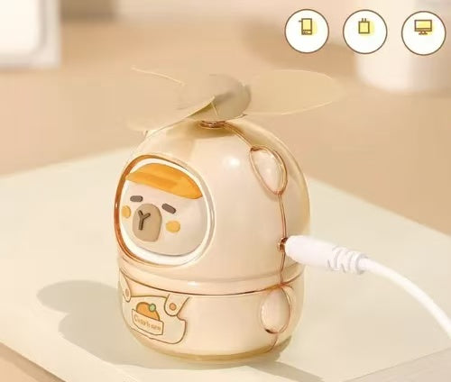 This adorable capybara mini fan keeps you cool with a gentle breeze. Compact, portable, and full of charm. Perfect for hot days on the go!