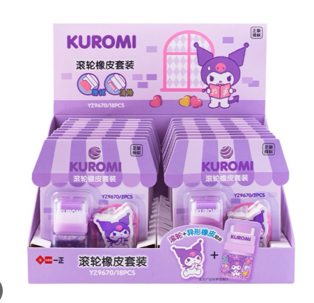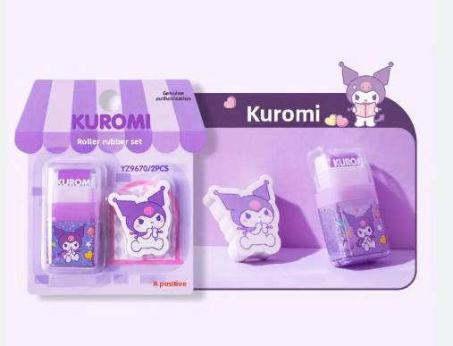 A cute Kuromi roller eraser that makes fixing mistakes more fun.