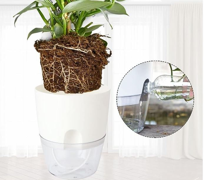 Water your plants with ease with this self-watering pot. The automatic can irrigates your desktop plants, relieving you of the hassle. Its clear design allows you to monitor the water level, while the absorbent technology helps keep plants healthy and thriving. A convenient and effortless solution for indoor gardeners.