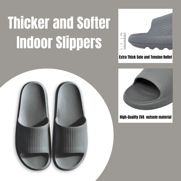 Lightweight and durable EVA material that offers a comfortable wearing experience. The thickened EVA elastic provides amazing cushioning and allows for bending with slight rebound ability. Wavy Non-Slip The durable wavy EVA outsole offers waterproof and non-slip properties, providing a good grip and balance for your feet. The wavy design increases friction. minimizing the risk of slipping. EVA Plastic Material Slidess slippers are made of high-quality EVA outsole material. known for its durability. non-slip properties. waterproofness. lightweight, good softness, aging resistance, and odorless. The environmentally friendly material particles are non-toxic and harmless to humans.
