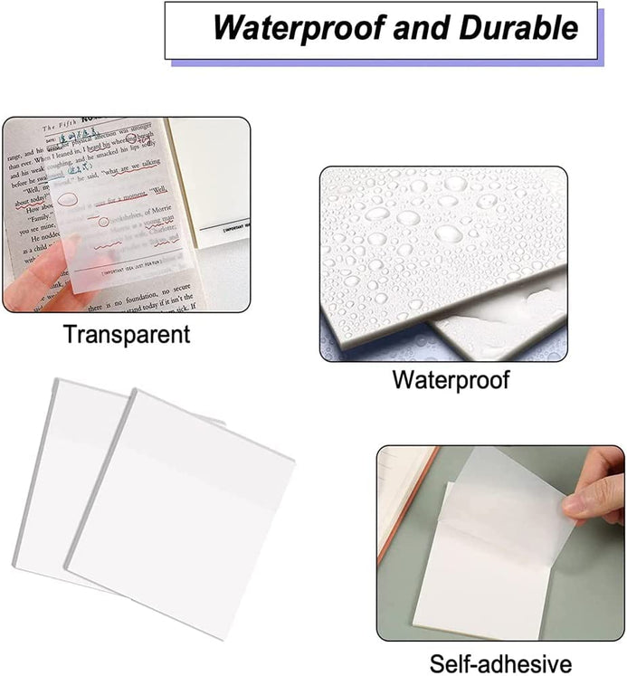 The ideal addition to your studies, work, and daily life, transparent sticky notes are incredibly useful., High-quality, easily removable glue is used to create the transparent post-it notes