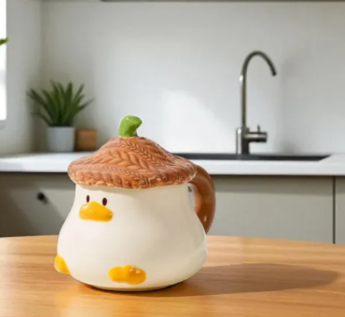 Meet the Acorn Duck Mug — cozy charm, a cute duck design, and a warm brown lid for the perfect sip.