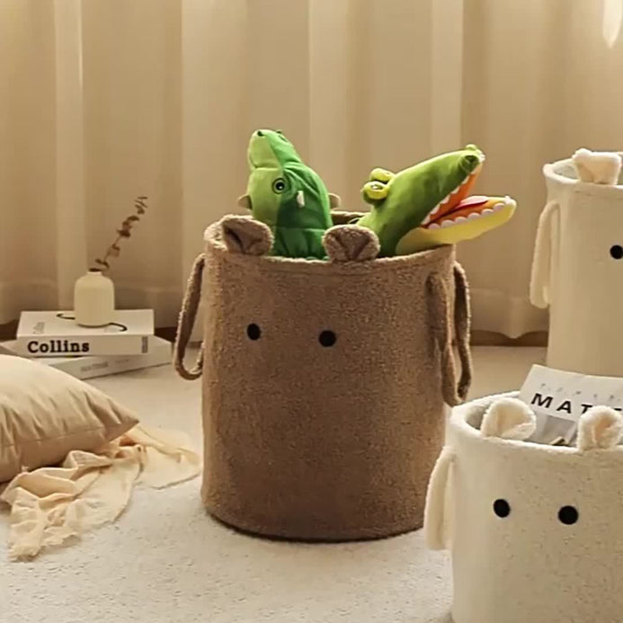 Brighten playtime with our Fluffy Face Bucket! Comes in beige and brown with adorable eyes. Perfect for little ones.