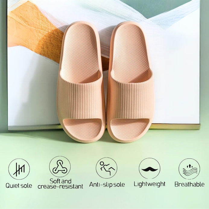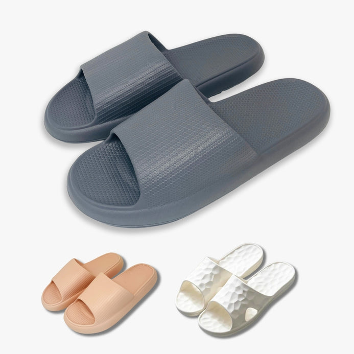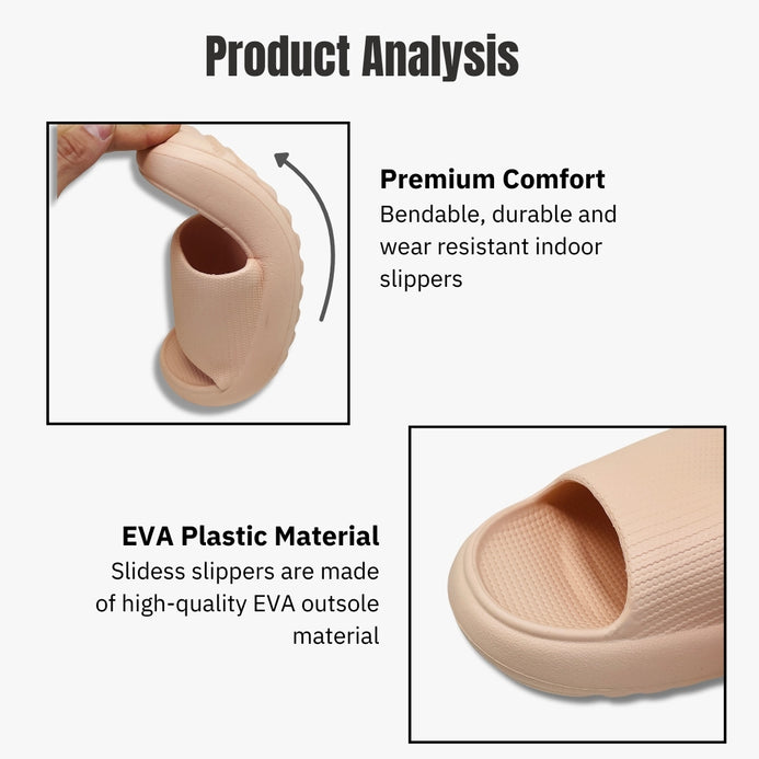 Lightweight and durable EVA material that offers a comfortable wearing experience. The thickened EVA elastic provides amazing cushioning and allows for bending with slight rebound ability. Wavy Non-Slip The durable wavy EVA outsole offers waterproof and non-slip properties, providing a good grip and balance for your feet. The wavy design increases friction. minimizing the risk of slipping. EVA Plastic Material Slidess slippers are made of high-quality EVA outsole material. known for its durability. non-slip properties. waterproofness. lightweight, good softness, aging resistance, and odorless. The environmentally friendly material particles are non-toxic and harmless to humans.