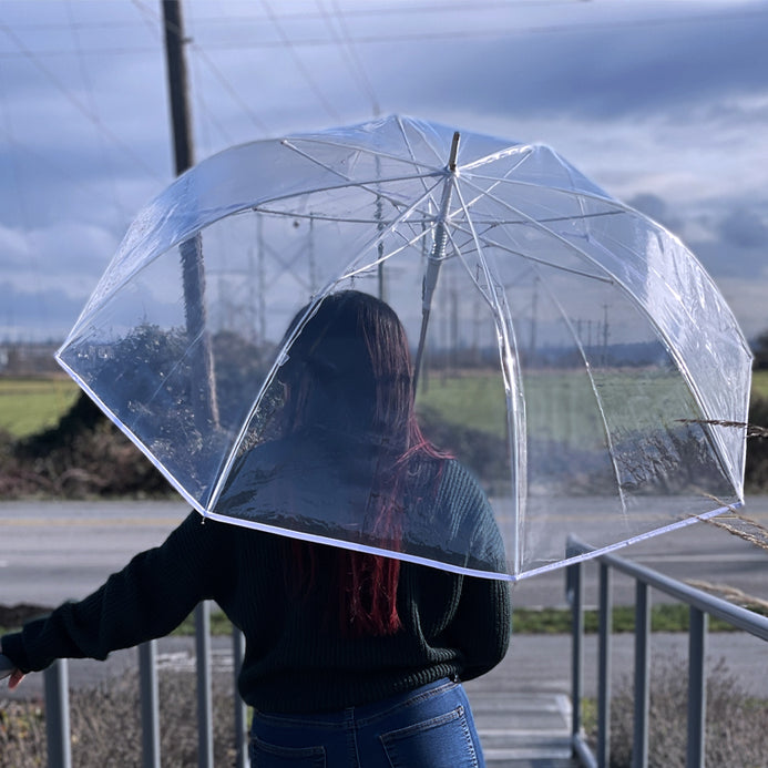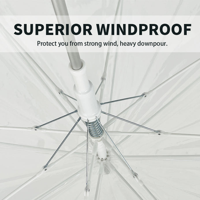 A functional and stylish transparent umbrella for rainy days with a smooth silver handle and automatic open feature is the perfect accessory for those who want to stay dry and stylish on rainy days. With its clear canopy, it blends well with any outfit, and the silver handle adds a touch of classic elegance. The windproof design and automatic open feature make it practical and convenient to use, providing protection from the elements and making it easier to open and close in a hurry.